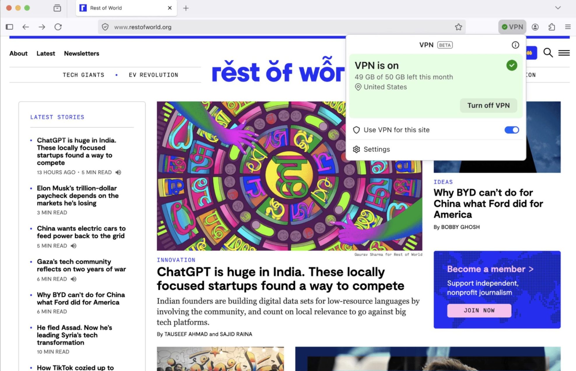 Si ce VPN intégré peut séduire par sa simplicité, en lisant la page dédiée au service, on voit que celui-ci comporte plusieurs restrictions. En effet, la première concerne la quantité de données utilisables, car Mozilla limite l’usage à 50 Go par mois. Au delà de ce seuil, le trafic ne sera plus protégé jusqu’au mois suivant.