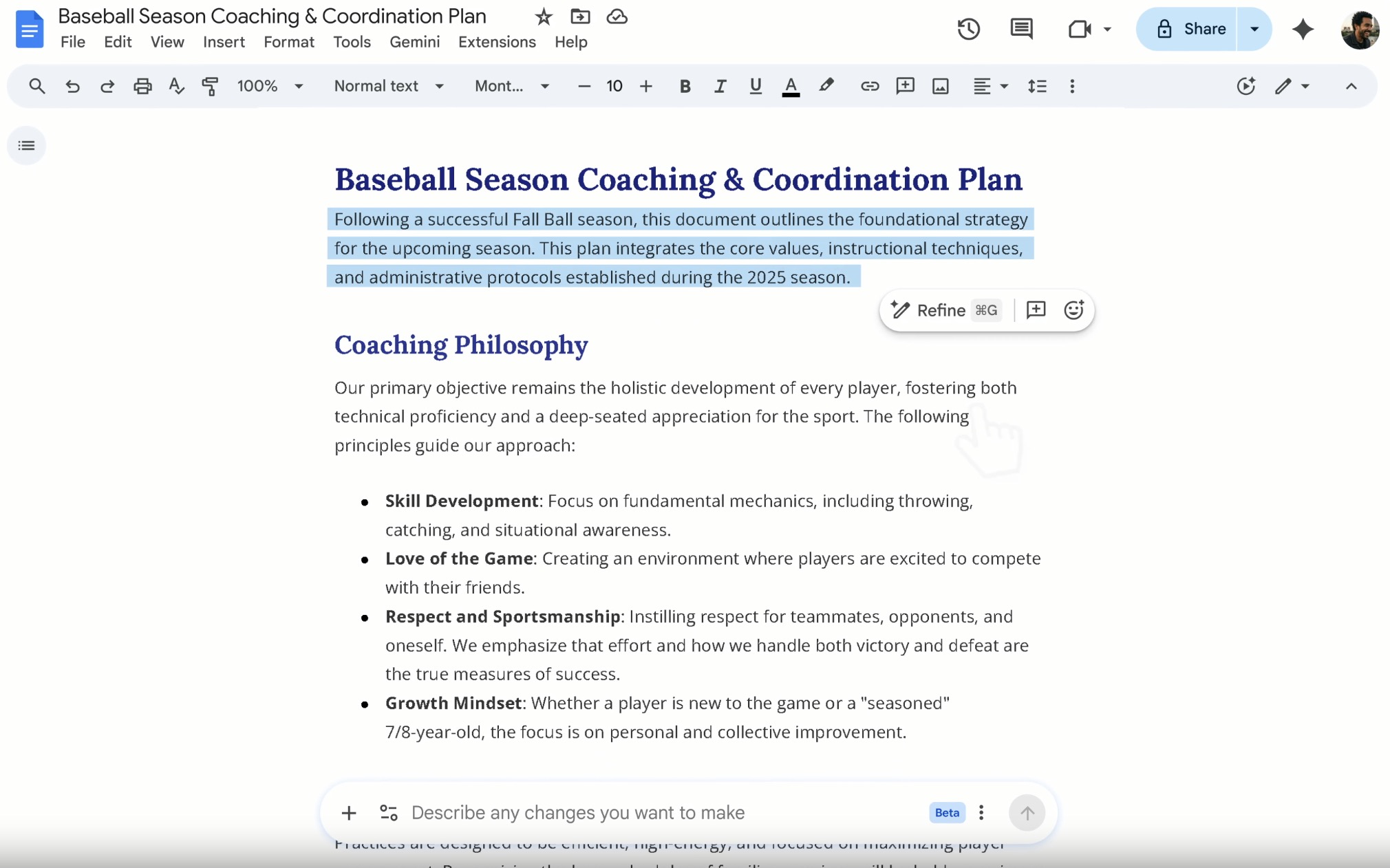 La principale évolution concerne Google Docs. L’interface intègre désormais une barre de discussion Gemini en bas de l’écran, permettant de décrire en langage naturel le document que l’on souhaite produire.