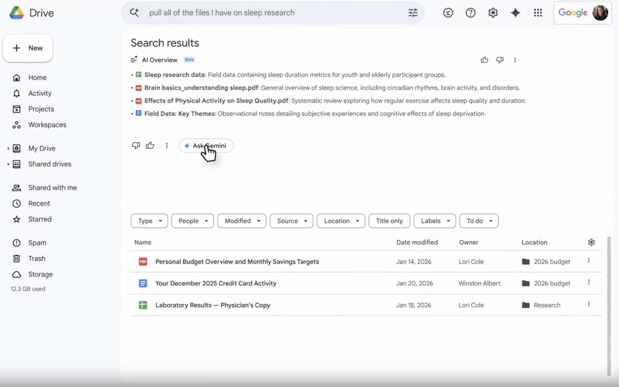 Google Drive évolue également avec l’arrivée de fonctionnalités d’analyse basées sur Gemini. La recherche intègre désormais les très controversés AI Overviews, capables de proposer une synthèse des informations pertinentes directement dans les résultats.