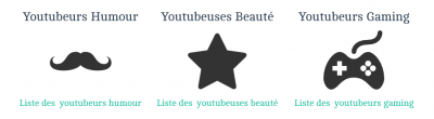 Voici le lien direct vers l’annuaire des YouTubeurs ! Ils étaient déjà présents dans la précédente version de l’annuaire, mais dans un catégorie générique qui ne permettait pas de différencier les styles de chacun. Avec les 4 nouvelles catégories, ils enfin la place qu’ils méritent. Voici les catégories :